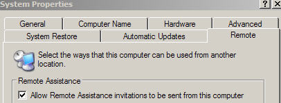 "Allow Remote Assistance invitations to be sent from this computer"